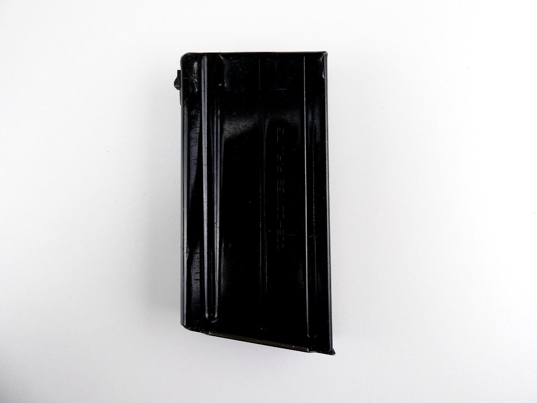 (1) 7.62 NATO, 5/20 ROUND PINNED MAG, BLUED STEEL CONSTRUCTION, INTERIOR SPRING MISSING, MARKED: "1005-001739 R.F.I. 73". SEE PHOTOS. PAL REQUIRED.