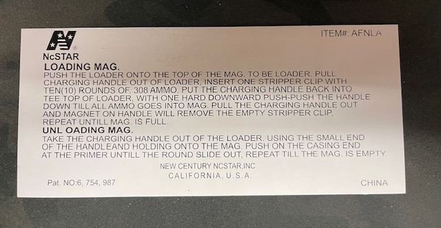 • Works with many different .308/ 7.62 x 51 Box Magazines, some modification to loader may be required