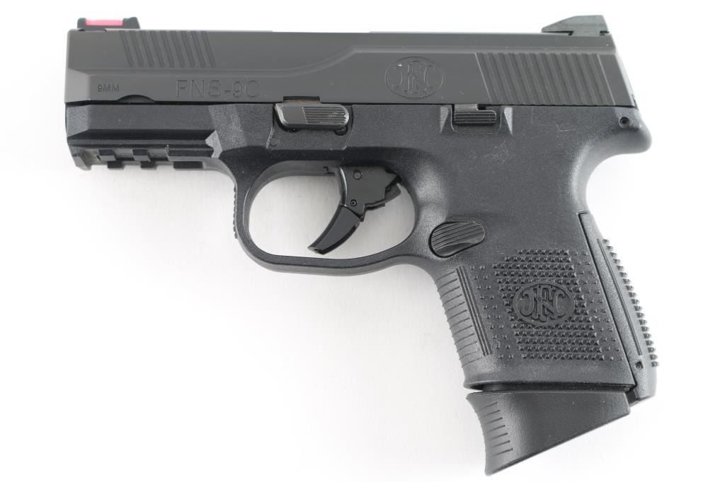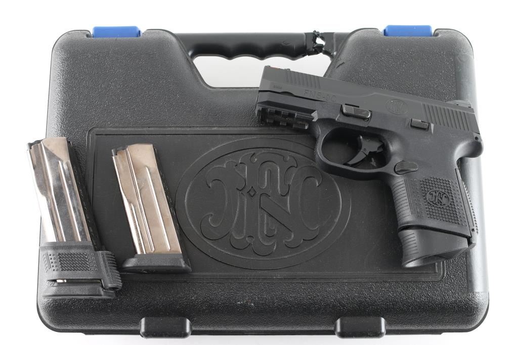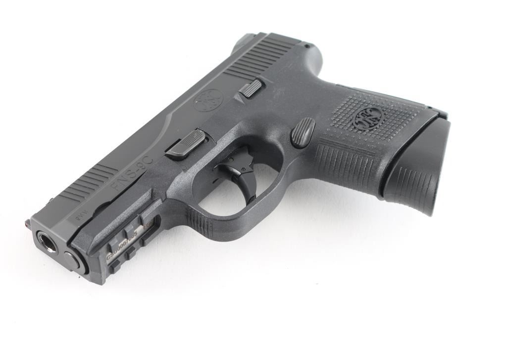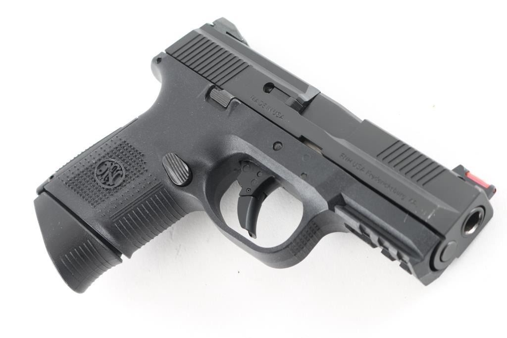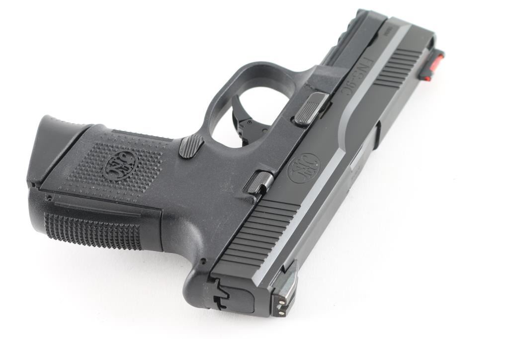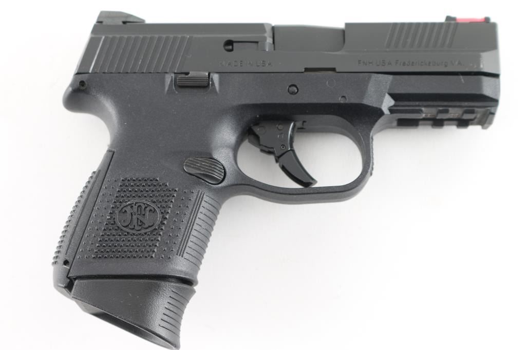 Semiautomatic pistol features approx 3.5" barrel, red fiber optic front sight, fixed rear 2 dot sights in dovetail, striker fired, manual safety in trigger, replaceable backstrap inserts allow changes in size & shape, accessory rail on polymer frame. All black finish. Bore is excellent condition. Overall external condition is like new, with little evidence of handling. Includes factory plastic carry case, manual, cable lock, two flush fit and one extended length magazines, one different backstrap insert. Condition is NRA excellent - New Unfired *** Modern Firearm ***