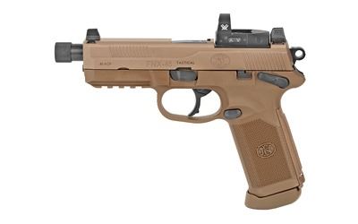 FN America, FN America, FNX-45 Tactical, DA/SA, Semi-automatic, Full Size Pistol, 45 ACP, 5.3" Threaded Barrel, Polymer Frame, Flat Dark Earth Finish, Suppressor Height Night Sights, Vortex Venom 6 MOA 10Rd, 2 Magazines, Manual Safety
