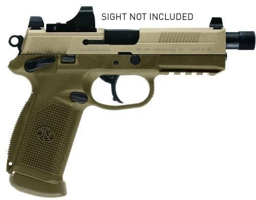 No Sights. FN America, FNX-45 Tactical, DA/SA, Semi-automatic, Full Size Pistol, 45 ACP, 5.3" Threaded Barrel, Polymer Frame, Flat Dark Earth Finish, Suppressor Height Night Sights, Safety and Ambi Decocker, 15Rd, 3 Magazines, Fired Case, Manual Safety Manufacturer: FN America Model: FNX-45 Model: Tactical Action: Semi-automatic Type: Double Action Size: Full Caliber: 45 ACP Barrel Length: 5" Frame/Material: Polymer Finish/Color: Flat Dark Earth Capacity: 15Rd Accessories: 3 Mags Description: Manual Safety Fired Casing: Fired Case Safety: Safety and Ambi Decocker Sights: Night Sights Manufacturer Part #: 66968 MODEL:FNX-45 Tactical TYPE:Semi-Auto Pistol ACTION:Double / Single Action FINISH:Flat Dark Earth STOCK/FRAME:Polymer Frame STOCK/GRIPS:Flat Dark Earth Polymer SPC FEATURE:Threaded Barrel Model CALIBER/GAUGE:45 ACP CAPACITY:15+1 # OF MAGS:3 MAGAZINE DESC:15 Round BARREL:5.3" CHAMBER:45 ACP SIGHTS:Extra Tall Fixed Night Sights ADDL INFO:Threaded Barrel .578x28 ADDL INFO:MIL-STD 1913 Mounting Rail ADDL INFO:Interchangeable Backstraps GUN CASE:Fitted Soft Cordura Nylon Case