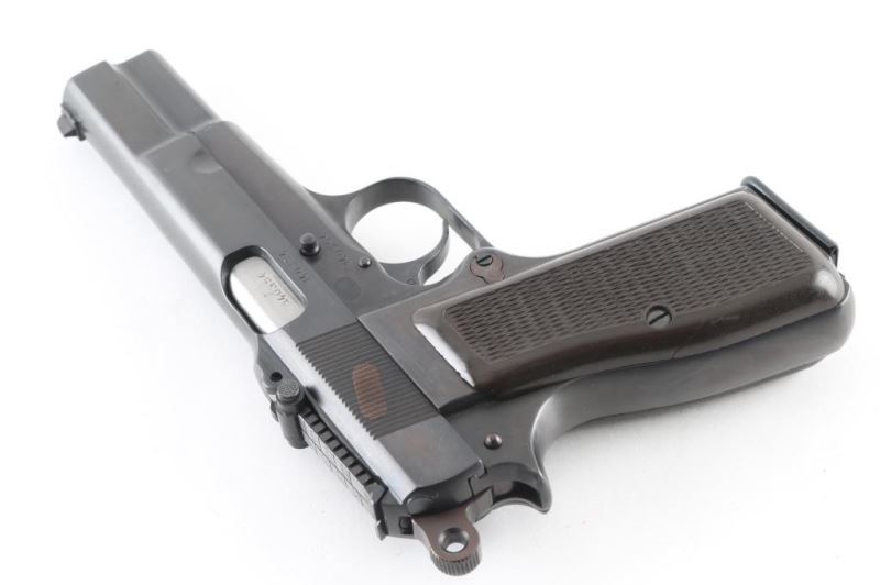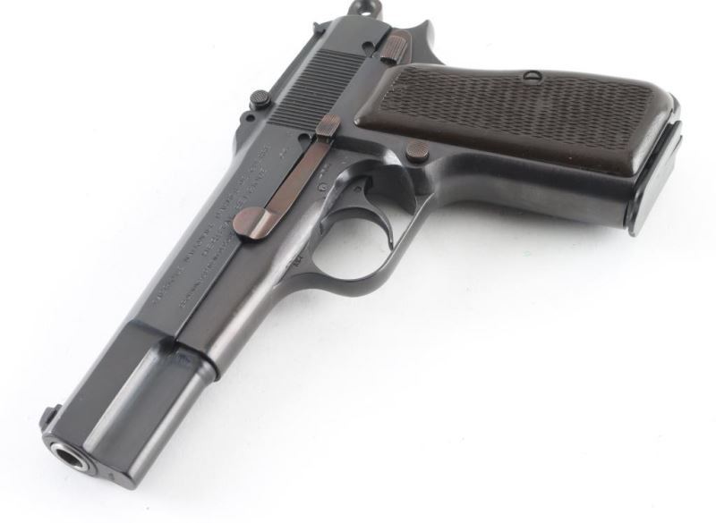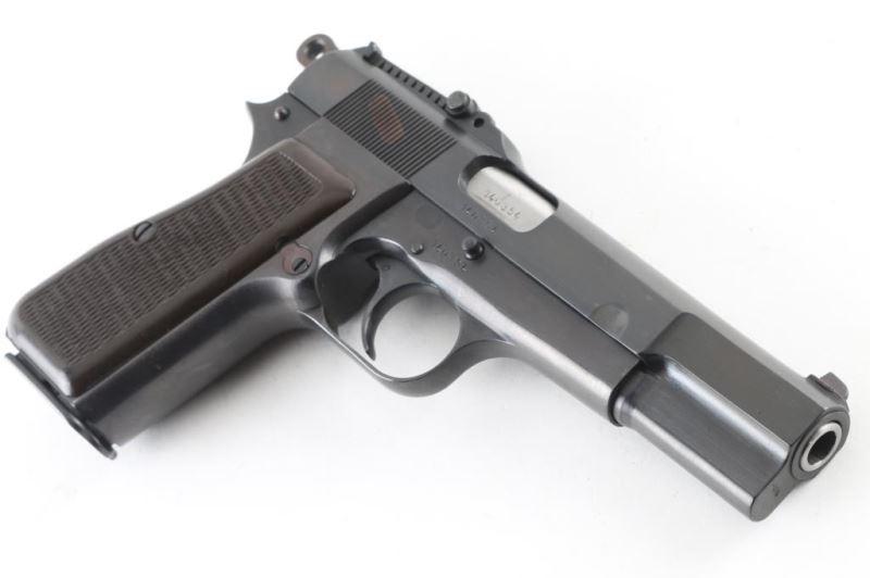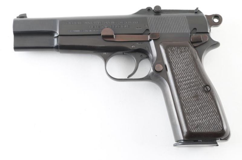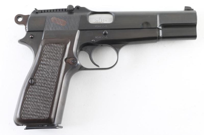 Pistol. Semi-Automatic. 13 rd magazine, Short recoil operated tilting barrel. 4.7" barrel. Ring hammer. The FN factory Herstal was used by the Wehrmacht to build pistols for the military, under the designation "9mm Pistole 640b. Left slide stamped "Fabrique Nationale D'Armes De Guerre, Herstal Belgique."Brownimg's Patent Depose .Serial numbers match on Barrel,frame, and slide .Left triggerguard stamped "MR". Nazi Eagle proofed on frame and slide. Waffenamt Eagle/WaW140 on frame and slide . Pistol has been professionally restored .A really beautiful job with a high polish blue finish. Shoulder stock slot has been filled in, and polished. Can't really notice it. All markings are very crisp and clear. Tangent rear sight. Note, The roller on the tangent sight was put on upside down when reassembled, easy fix. Bore is very good with strong rifling. Checkered brown plastic grips are good, except a the right panel has a small crack. "4" stamped on the magazine. NRA Condition-Very Good./Restored. C/R Firearm