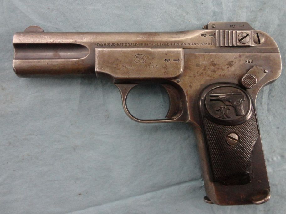 #62022; 32 ACP. Std. Config. blue fading to grey. Right & left grip are broke off at bottom. This historical significant model of pistol is credited for starting the first World War when used in the assignation of the Arch Duke.