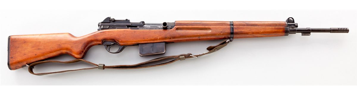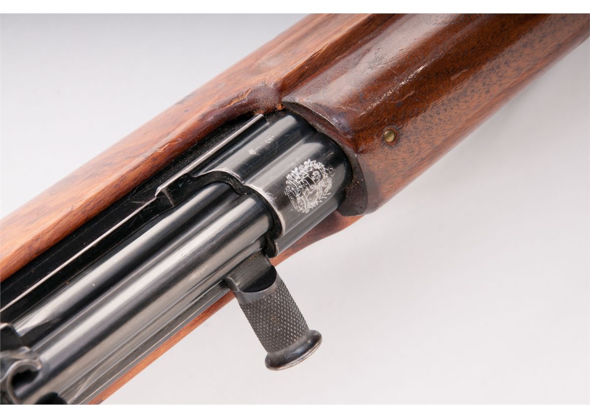 FN Model 1949 (SAFN 49) Semi-Automatic Rifle, Venezualan contract, #804, 7x57 cal., 23'' barrel, original blue finish, European walnut stock and upper handguard, with green leather sling. Condition is about fine retaining 85%+ original finish. Stocks with light scuffs, dings, and minor oil staining. Action is crisp, bore is fine. Est.: $600-$900. (C&R)