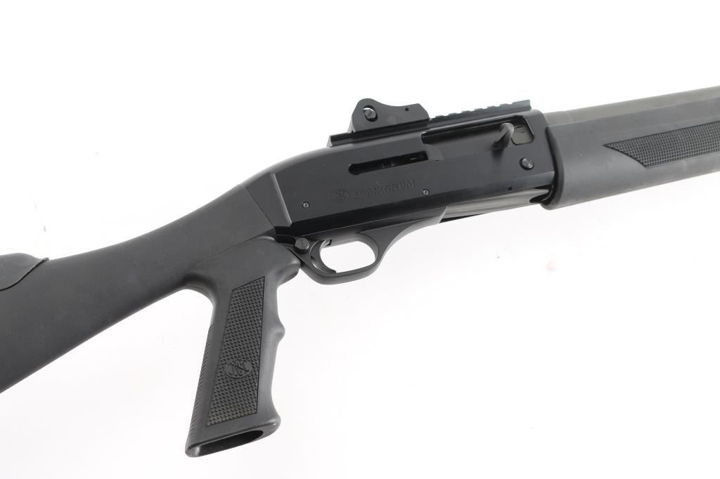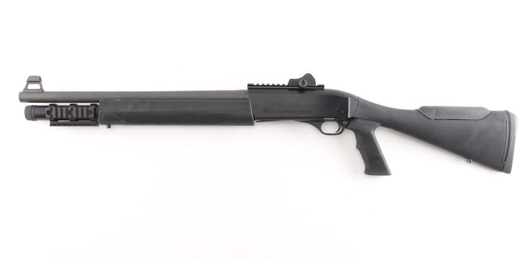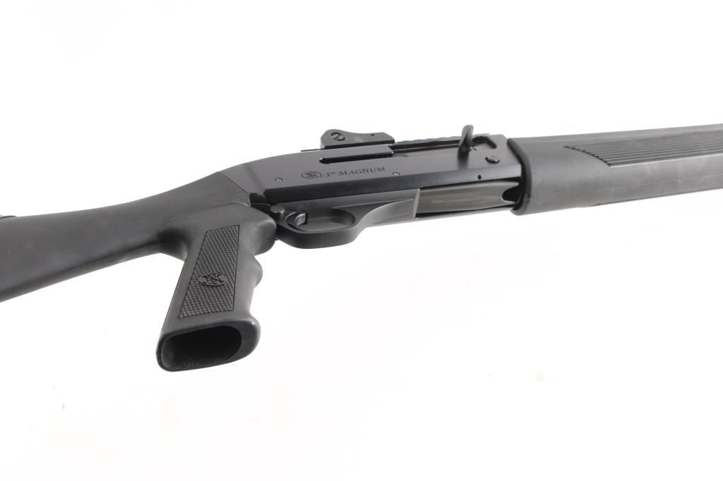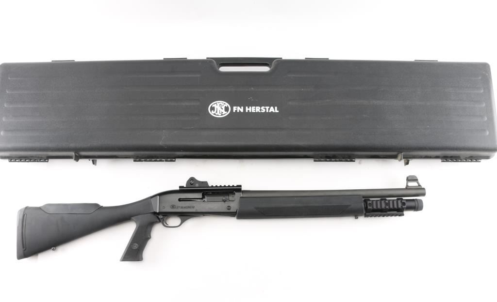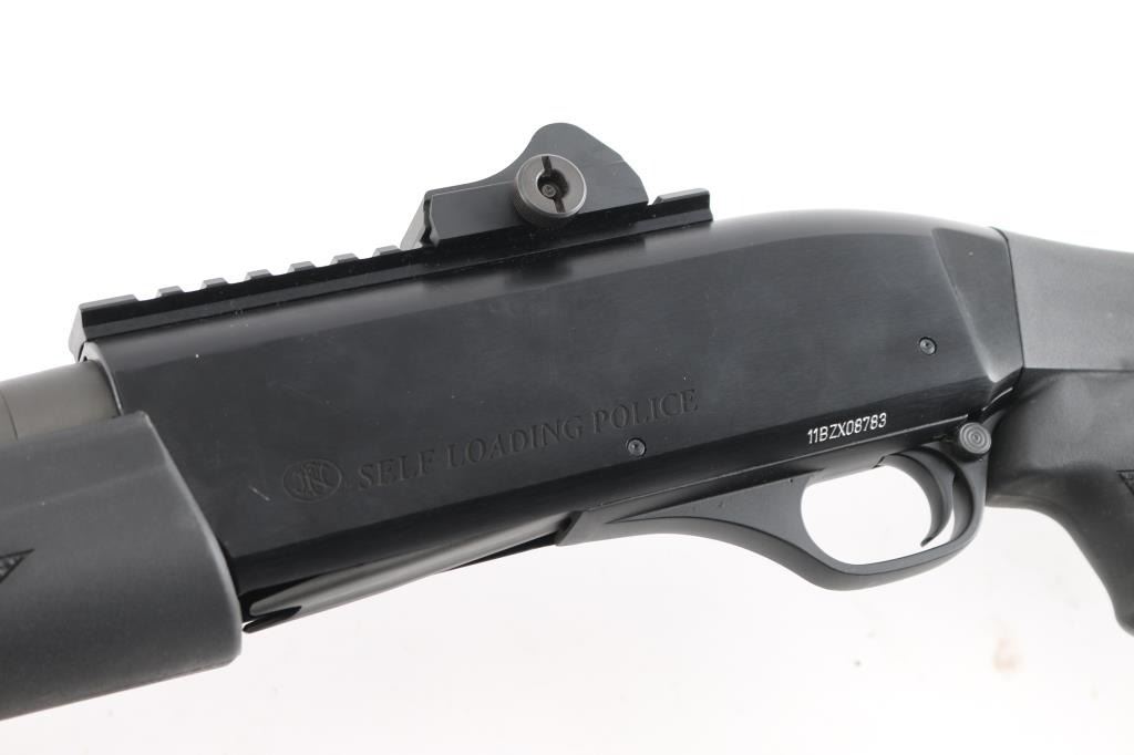 SN: 11BZX08783. Made in Belgium this is a 12 gauge semi-auto shotgun. The receiver is marked Self Loading Police on the left and 3" Magnum on the right. It features a black FN synthetic pistol grip stock, 18" barrel, raised comb insert, 6 round, tube magazine with 3 accessory rails. Raised white dot front sight, adjustable ghost ring rear sight and a LOP of 14.5". The gun uses the Invector flush choke tube system with Imp. Cylinder installed, traditional style black stock FN hard plastic case. Bore is excellent/bright. Finish looks great with very light handling marks on the surface of the receiver.