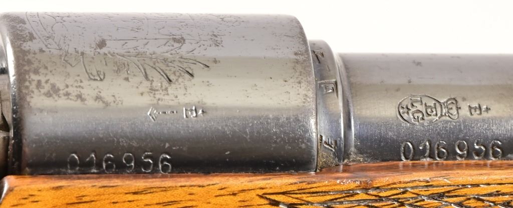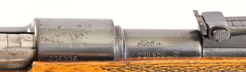 SN 016956. 18" barrel, fair bore. Bore appears 7.65 caliber. Sporter stock, sling. Modern.