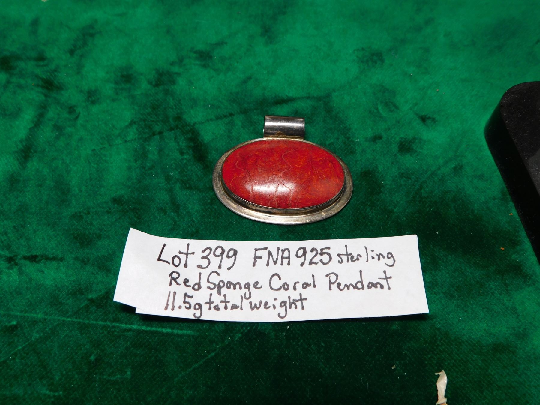 FNA 925 STERLING & RED SPONGE CORAL PENDANT