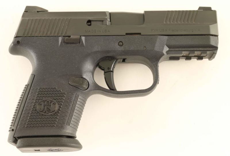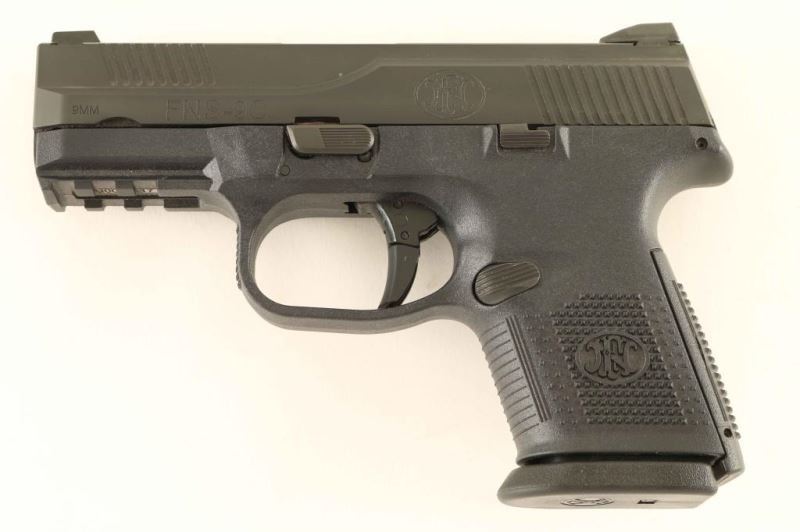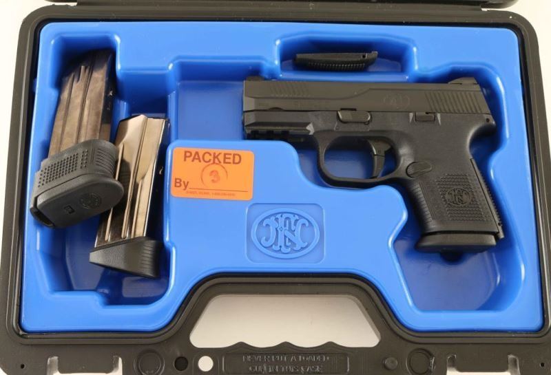 American made striker fired semi-automatic compact pistol chambered in 9x19mm, manufactured circa 2015. Features a matte black finished stainless steel slide with front & rear cocking serrations, 3.6" barrel, dovetailed three-dot night sights, trigger safety, ambidextrous slide release, ambidextrous push button magazine release, factory 12 round magazine, and black polymer frame with integral accessory rail, knurled grip & interchangeable backstrap. Includes the original factory hard case with documents, lock, spent case, extra backstrap and two spare magazines. Pistol exhibits approximately 98% of it's original finish with light slide wear on the barrel. Action is smooth, the bore is pristine and polymer is fine. Condition is NRA Excellent in case. ***Modern Firearm***