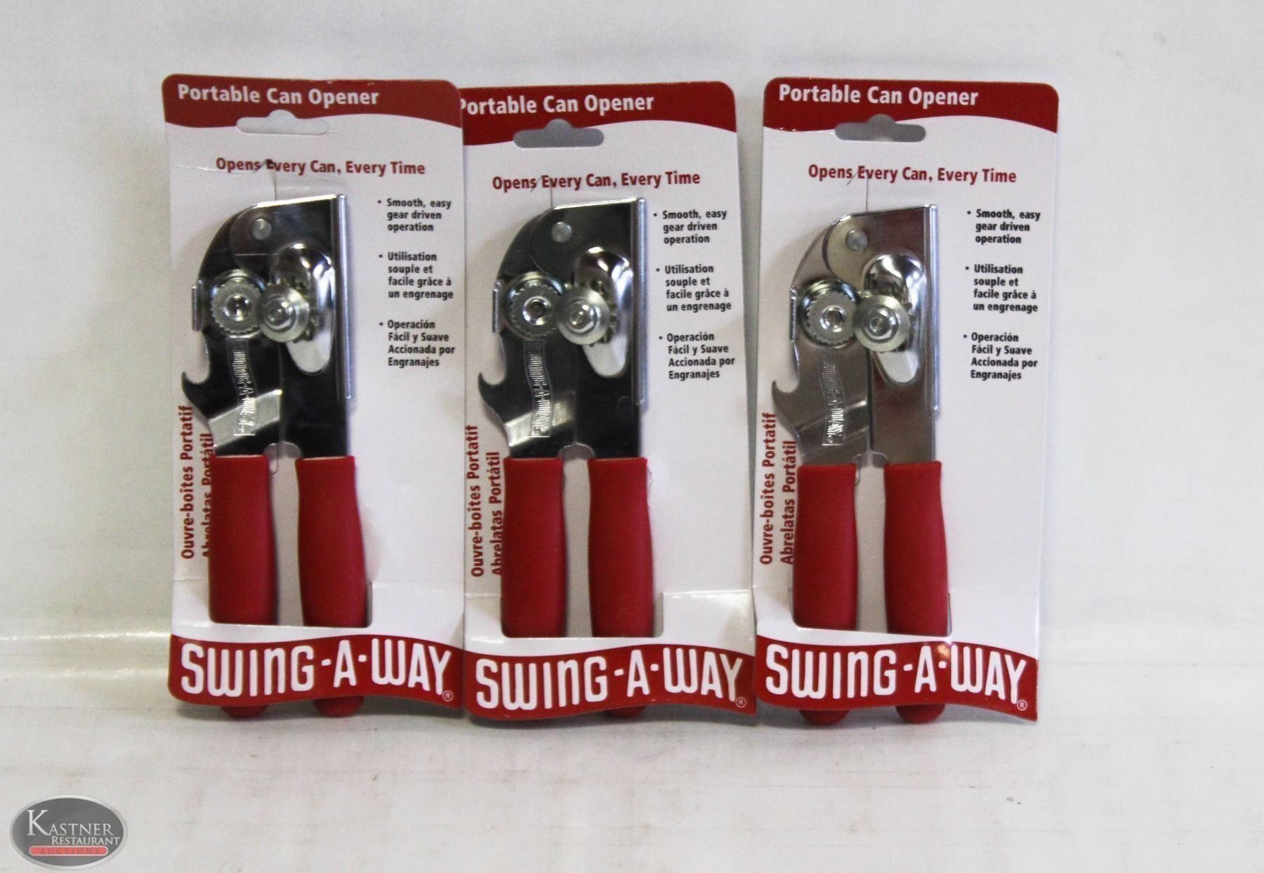 DD17 NEW FOCUS 407RD SWING - A - WAY PORTABLE CAN OPENER, RED - LOT OF 3 **ALL ITEMS MUST BE REMOVED BY 5PM MONDAY, FEBRUARY 6TH, 2023. ALL REMAINING ITEMS WILL BE SUBJECT TO A $6.00 PER DAY STORAGE CHARGE. ANY ITEMS REMAINING AFTER MONDAY, FEBRUARY 20TH, 2023 WILL BE CONSIDERED FORFEITED. NO REFUNDS WILL BE ISSUED FOR FORFEITED ITEMS.** TO SCHEDULE A PICK UP APPOINTMENT CLICK HERE