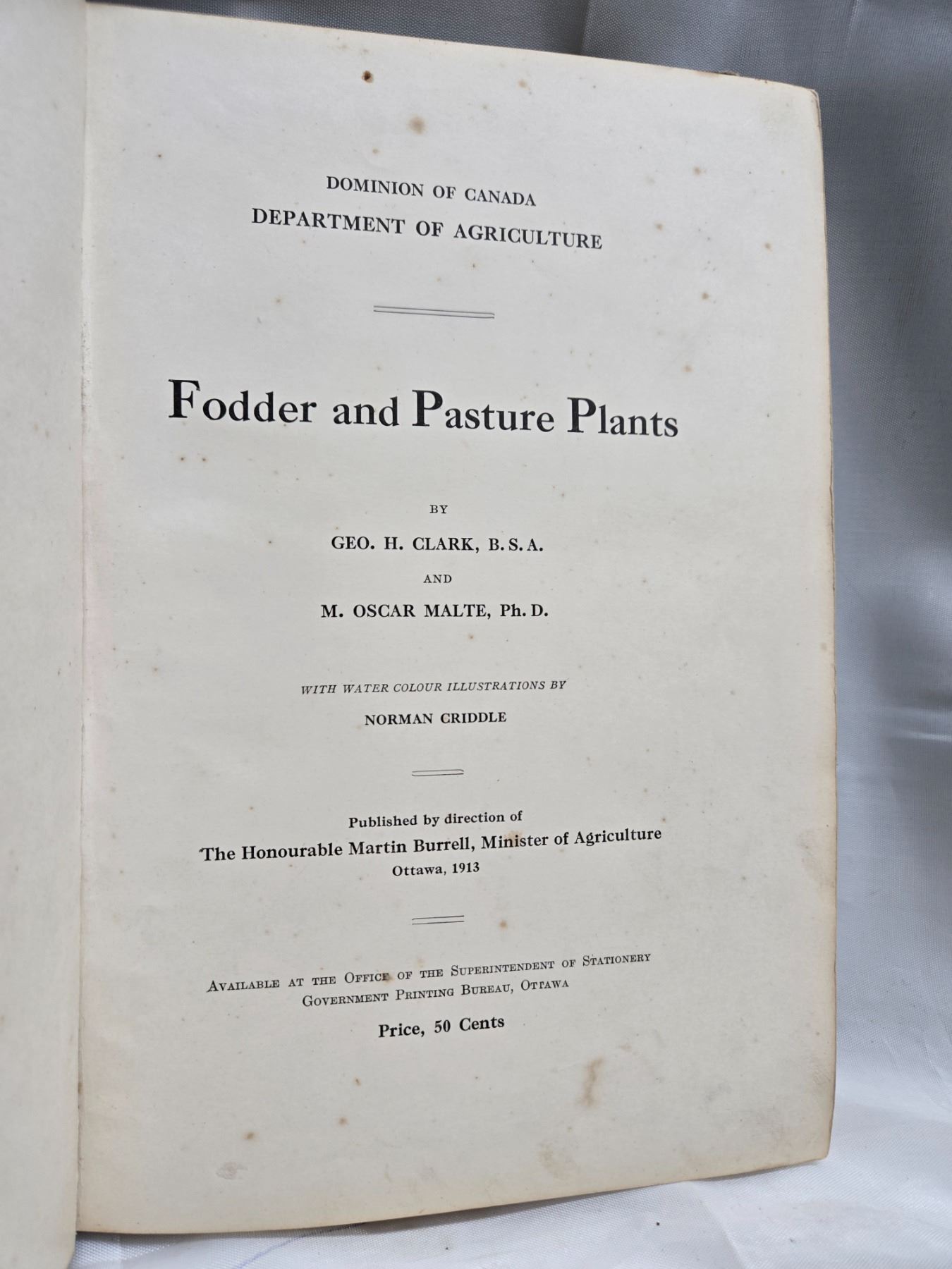 FODDER AND PASTURE PLANTS BY CLARK & MALTE, OTTAWA 1913