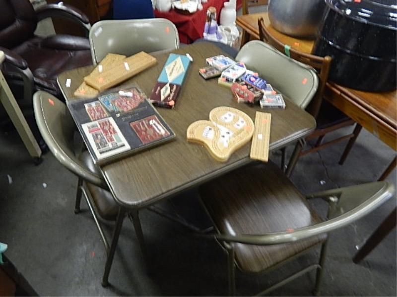 FOLDING CARD TABLE & 4 FOLDING CHAIRS