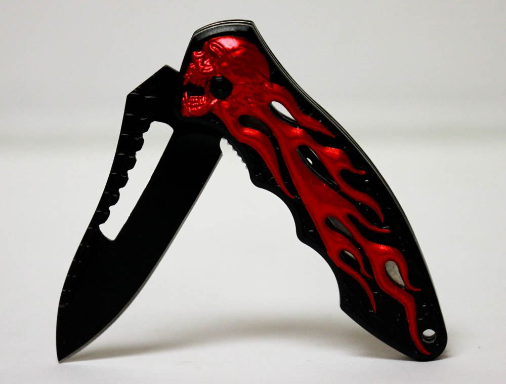 FOLDING KNIFE W/SKULLS & FLAMES **|**|** FOLDING KNIFE W/SKULLS & FLAMES