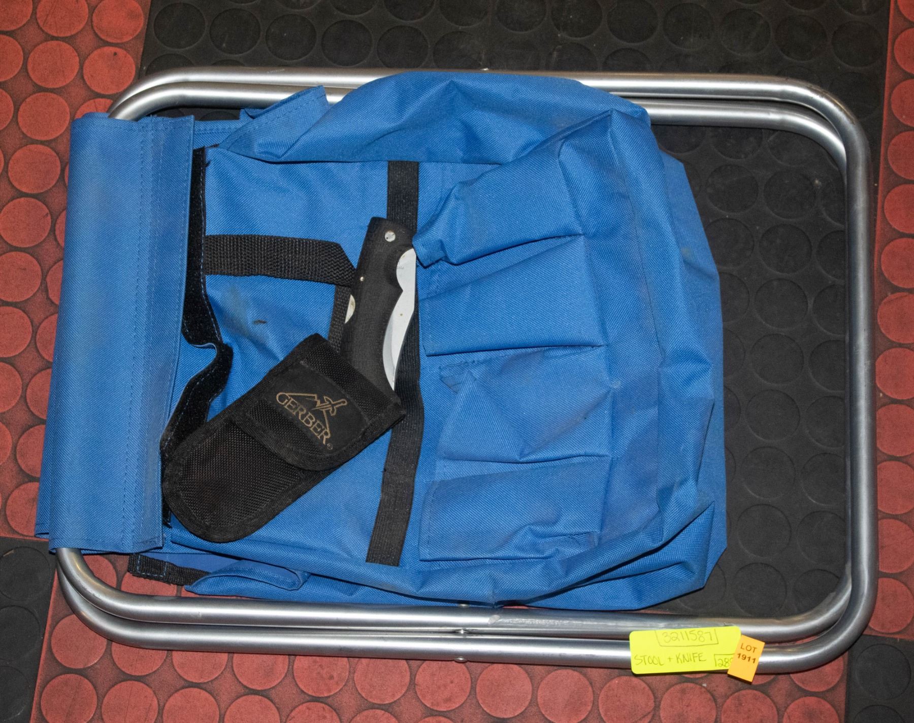 FOLDING MINI STOOL WITH GERBER HUNTING KNIFE
