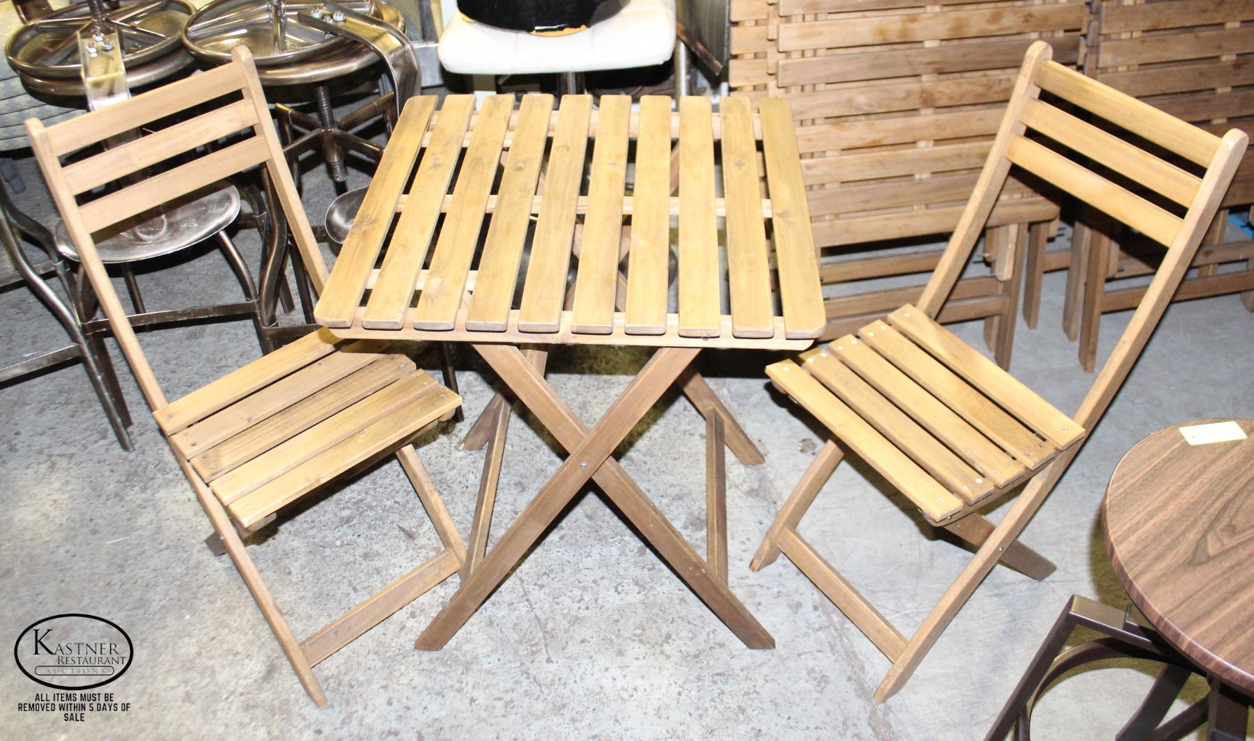 FOLDING WOOD PATIO TABLE W/ 2 FOLDING WOOD CHAIRS