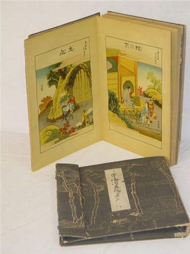 FOLIO OF JAPANESE WOODBLOCK PRINTS "ROAD TO TOKAIDO- 53 STATIONS" BY HOKUSAI, EARLY 20TH CENT. EDITION - WEAR TO BINDING, LIGHT FOXING & TONING