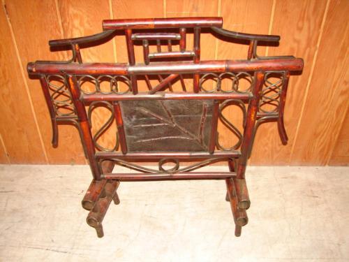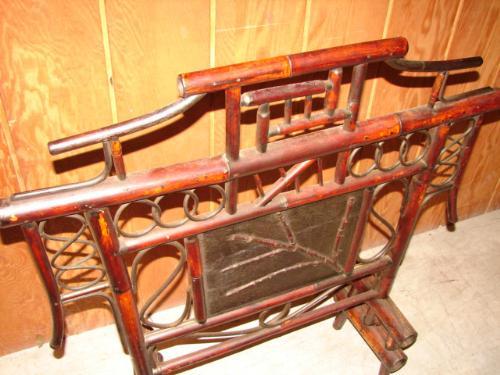 FOLK ART BAMBOO FOOTED FIREPLACE SCREEN. Has bamboo branch decoration at insert. Has early patina. 35.5” H, 34” W