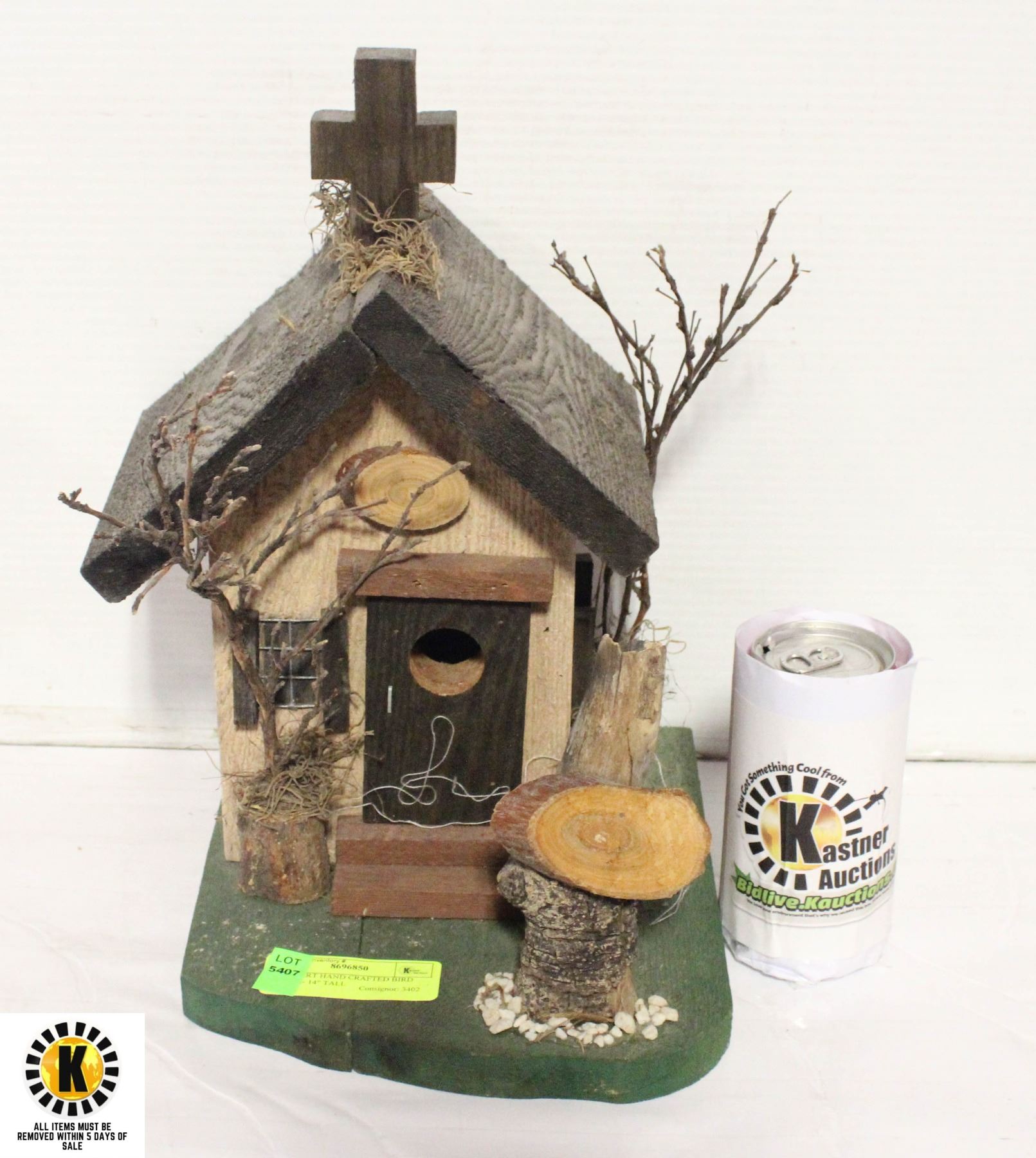 FOLK ART HAND CRAFTED BIRD HOUSE- 14" TALL