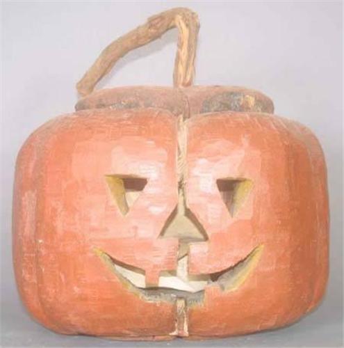 FOLK ART JACK-O-LANTERN from cedar root stem, painted height: 10", width: 12"