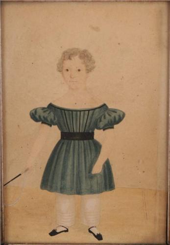 FOLK ART MINIATURE PORTRAIT 6 1/2"X 4 1/4" watercolor possibly Henry Walton circa 1850 <BR>condition: minor fading