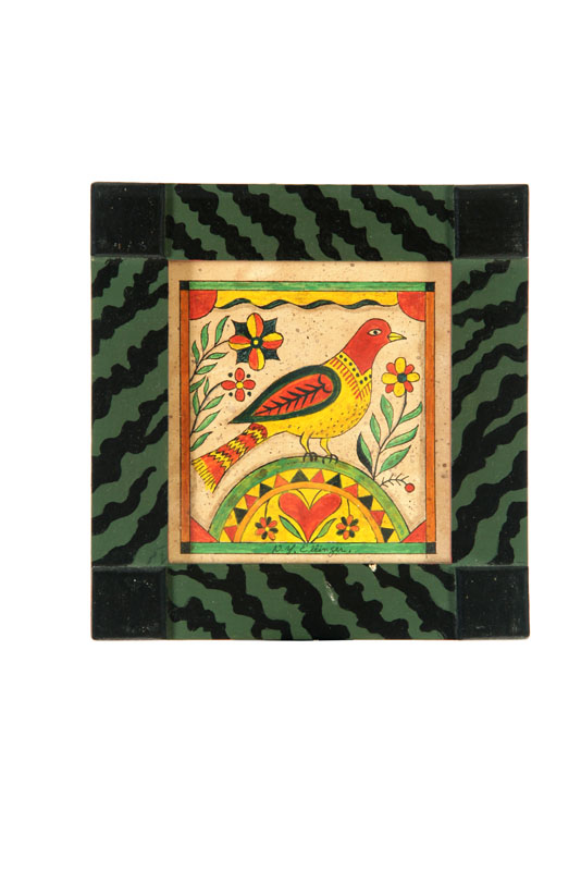 Signed. Bookplate-type with bird and heart. In a decorated frame, 6"h. 5 3/4"w.