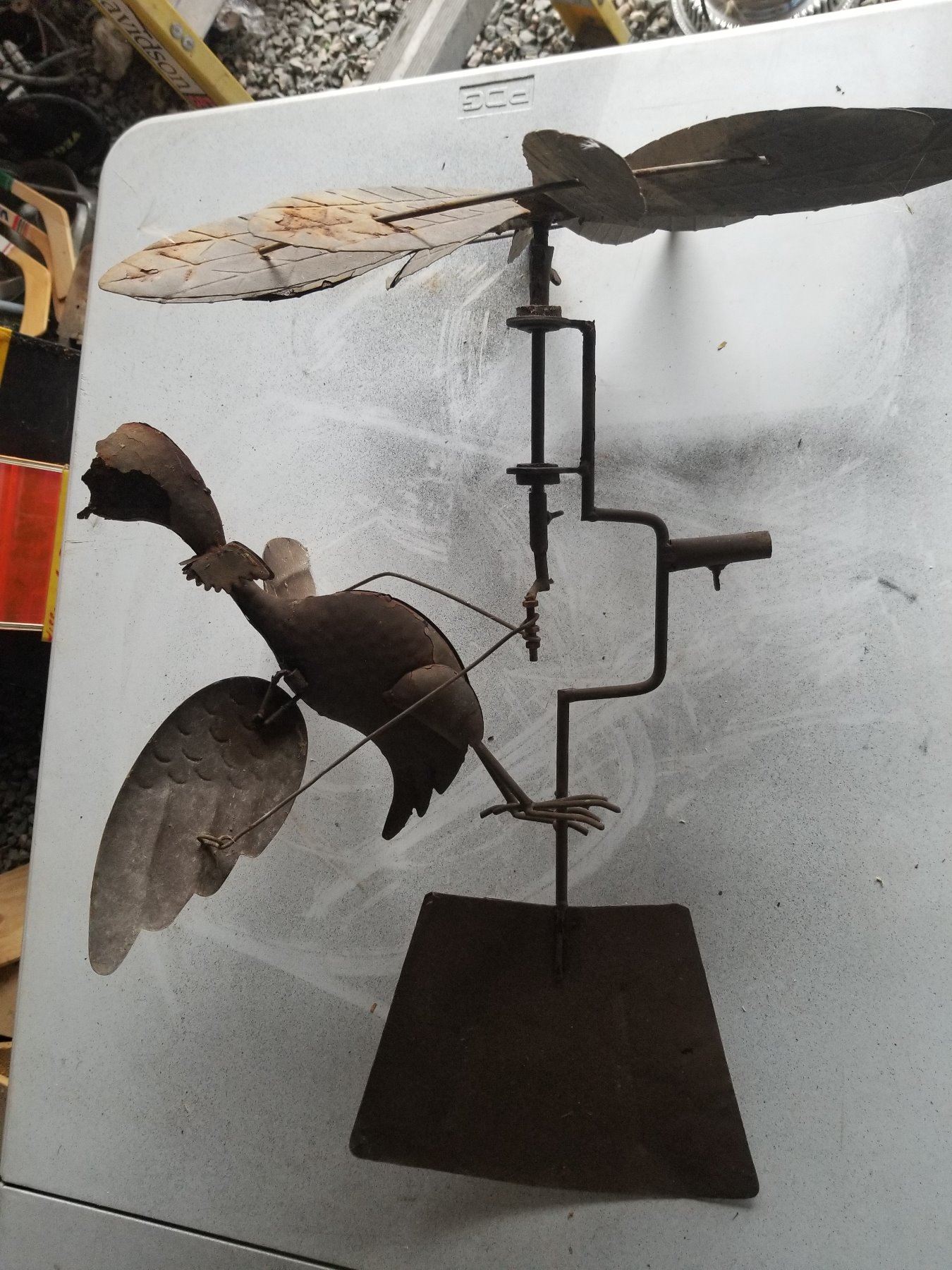 FOLK ART WHIRLIGIG (DUCKS HEAD NEEDS REPAIR) *24" LONG, 19" FAN*