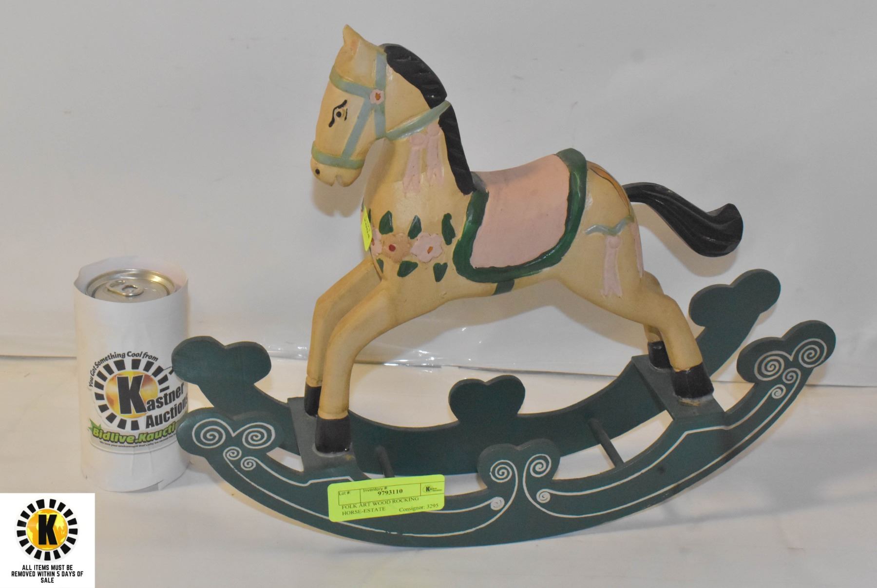 FOLK ART WOOD ROCKING HORSE-ESTATE