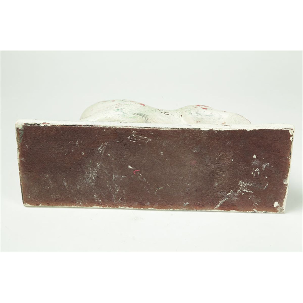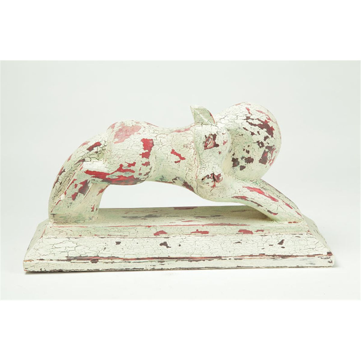 American, late 19th-early 20th century, softwood. Stylized running horse with layers of paint. Stamped script initials "D_". 9 1/2"h. 17 1/2"w.