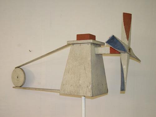FOLKY WIND DIRECTIONAL WHIRLIGIG-PAINTED RED, WHITE & BLUE ON MAKE-DO STAND - LOSSES TO TAIL & WEAR
