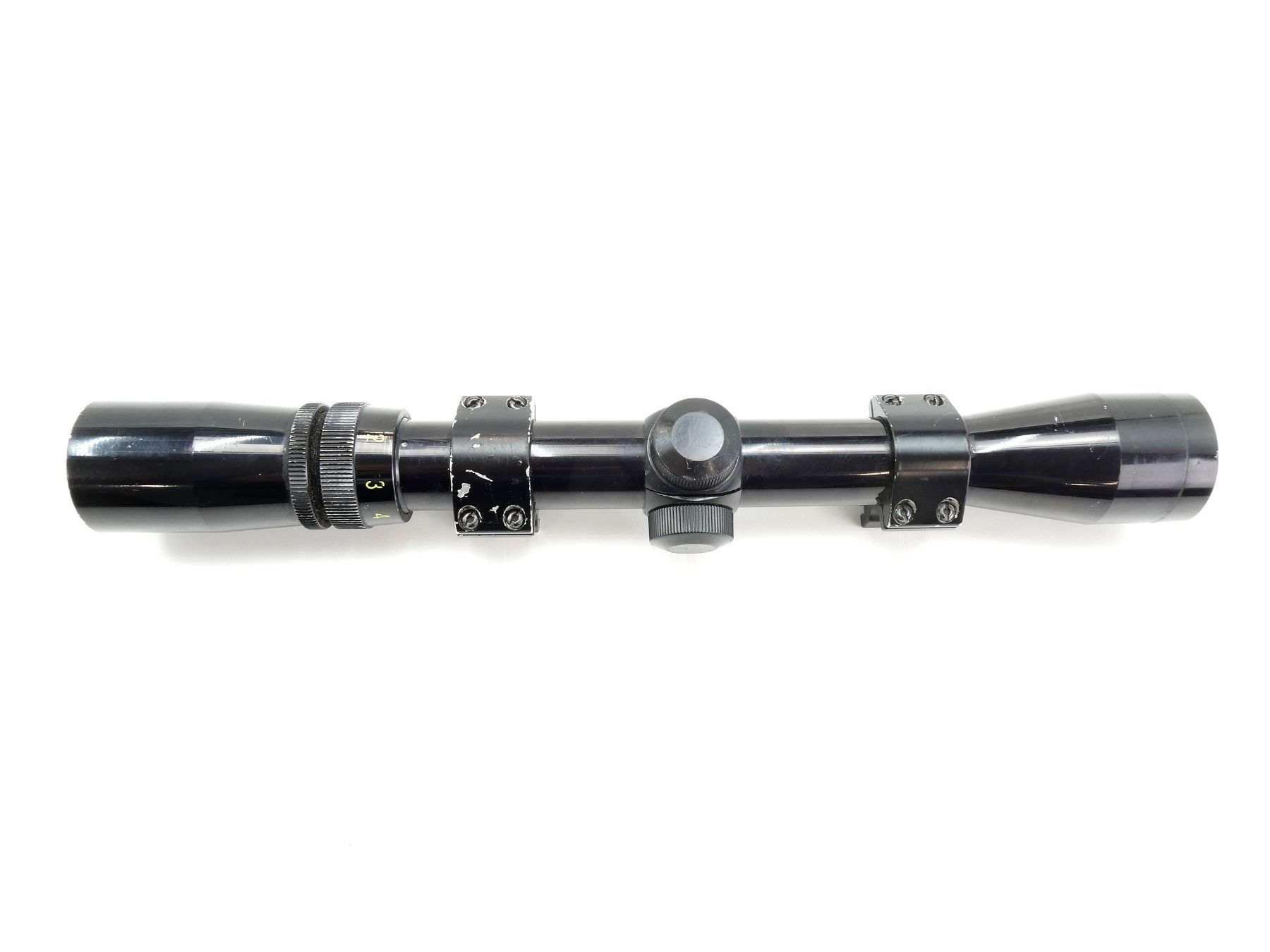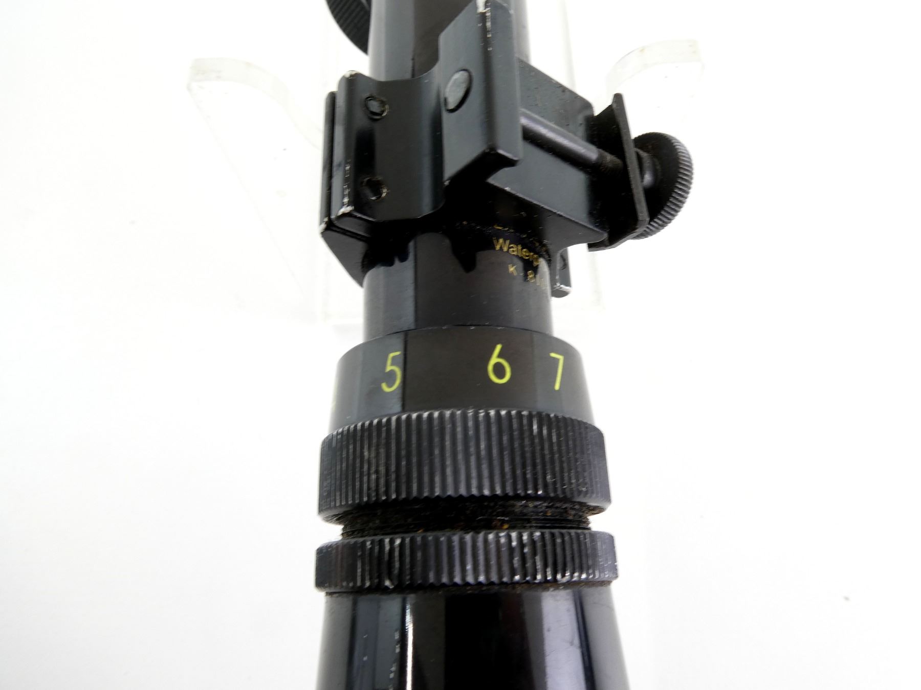 (1) CLEAR OPTICS, GERMAN #4 RETICLE, 1" DIAMETER TUBE, WORKING MAGNIFICATION RING, WINDAGE & ELEVATION KNOBS TURN, MARKED: "K-8103", WORKING MAGNIFICATION RING, WINDAGE & ELEVATION KNOBS TURN, WITH SCOPE RINGS, SHOWS WEAR & TEAR / USE MARKS. SEE PHOTOS.