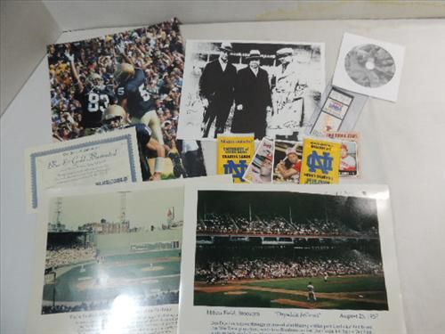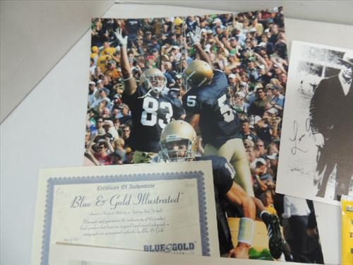 LOT 2 1992 PLAYOFF GAME TICKET CHICAGO BULLS & FAN PACK GROUP 3 BASEBALL REPLICA ROOKIE CARDS, NOTRE DAME WAX PACK, AUTOGRAPHED NOTRE DAME FOOTBALL PHOTO COA BLUE & GOLD. AS SHOWN.