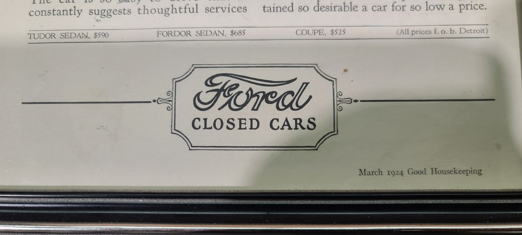 FORD ORIGINAL PAPPER ADD FROM MARCH 1924 ADVERTISEMENT IN "GOOD HOUSEKEEPING