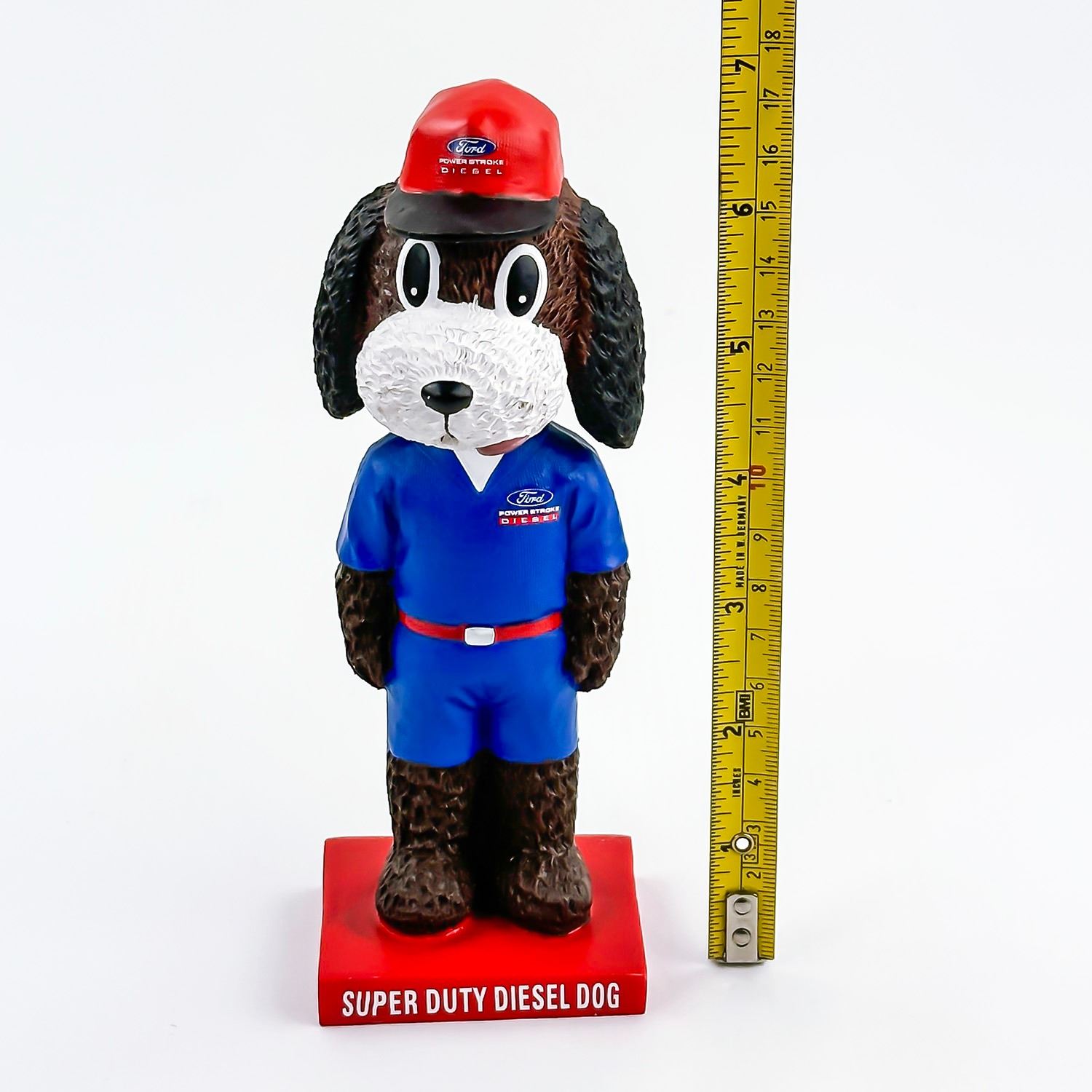 #8750 - FORD POWERSTROKE DIESEL - SUPER DUTY DIESEL DOG BOBBLE HEAD FIGURINE SCULPTURE. HOME OR OFFICE DECOR. BASE MEASURES: 2.25” (6 CM) WIDE BY 2” (5 CM) DEEP AND DOG STANDS 7” (18 CM) TALL