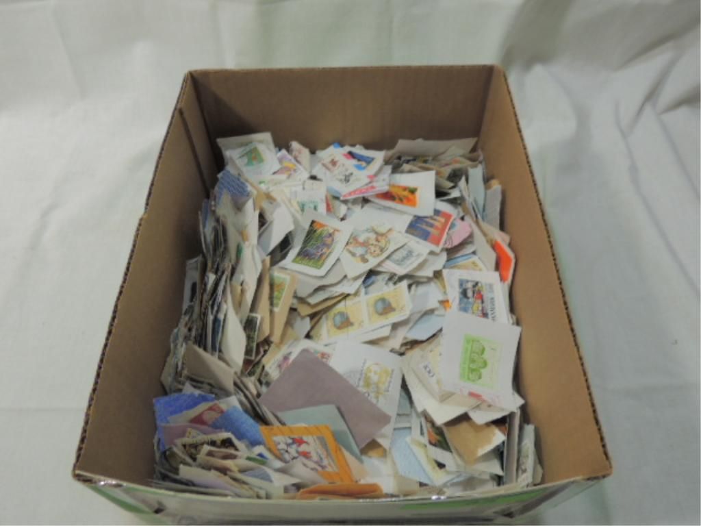 HUGE DEEP BOX LOT OF FOREIGN POSTAGE STAMPS, ON PAPER, MANY DIFFERENT COUNTRIES, 20TH CENTURY STAMPS. NICE BOX LOT OF STAMPS.