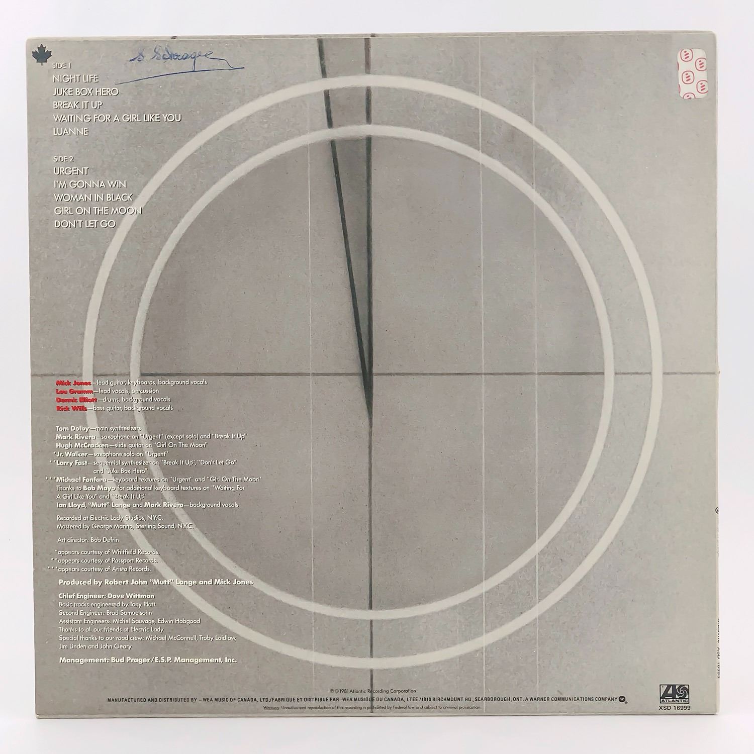 #9625 - RECORD ALBUM, ROCK, POP ROCK, ARENA ROCK, CLASSIC ROCK, ATLANTIC RECORDS XSD 16999***ITEM(S) LOCATED IN LETHBRIDGE ALBERTA. ALL ITEMS IN THIS AUCTION QUALIFY FOR OUR FREE TRANSPORT TO EDMONTON SERVICE. WORLDWIDE SHIPPING AVAILABLE