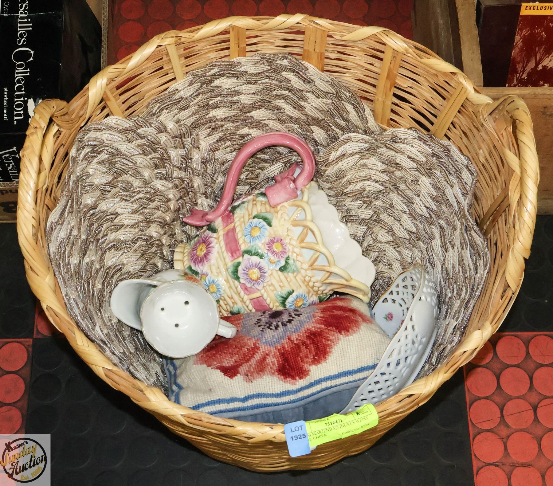 BOWL + DAISY HANDMADE CERAMIC PITCHER/JUG, SET OF MATCHING ROUND PLACEMATS, HANDMADE CROSS STITCH/PETIT POINT DECORATIVE PILLOW + ANTIQUE TEA STRAINER POT **ALL ITEMS MUST BE REMOVED BY 5PM SATURDAY, JUNE 28th 2025. ALL REMAINING ITEMS WILL BE SUBJECT TO A $6.00 PER DAY STORAGE CHARGE. ANY ITEMS REMAINING AFTER MONDAY, JULY 14TH 2025 WILL BE CONSIDERED FORFEITED. NO REFUNDS WILL BE ISSUED FOR FORFEITED ITEMS. TO SCHEDULE A PICK UP APPOINTMENT CLICK HERE
