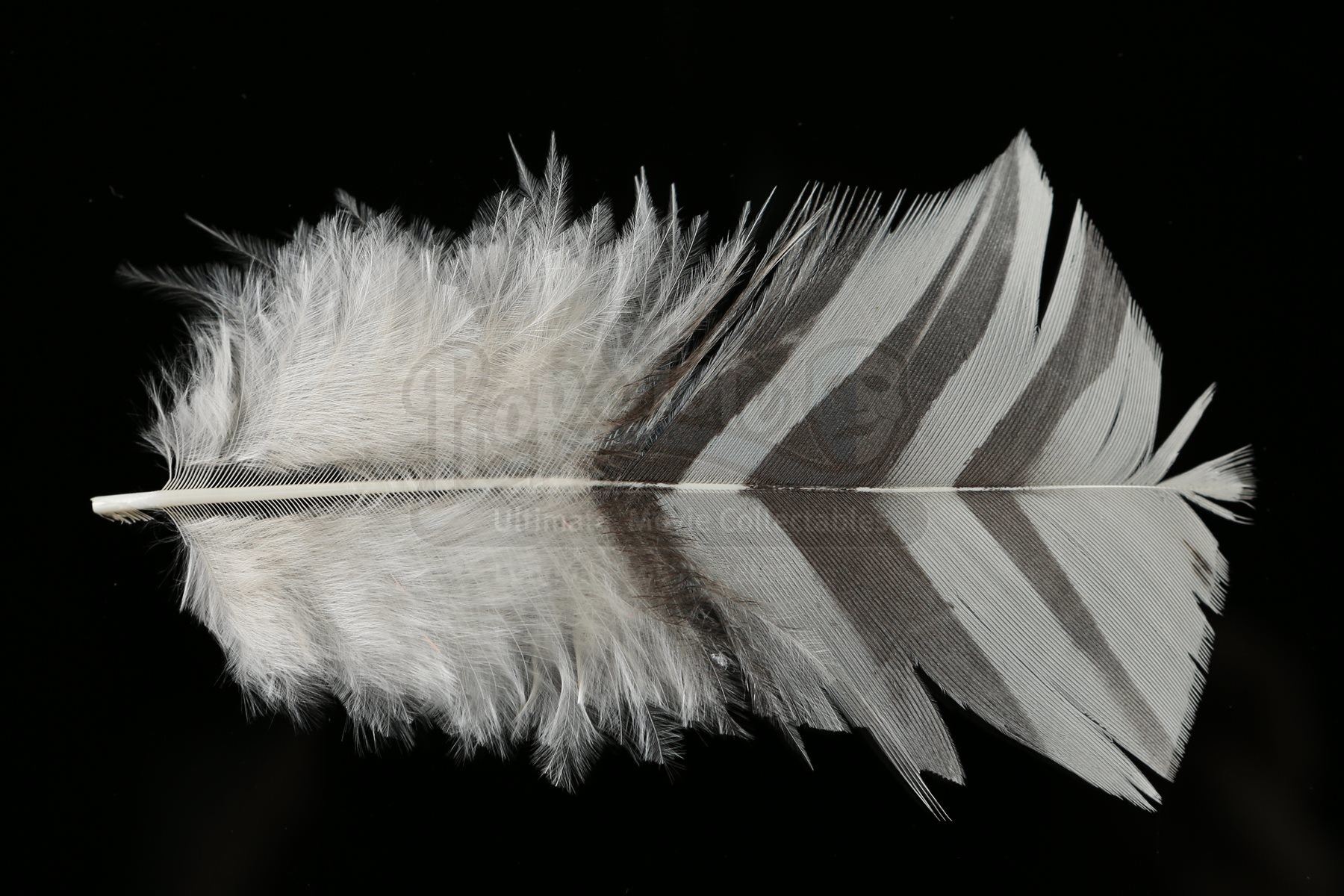 This real feather is white with grey markings. It is accompanied by two continuity Polaroid photographs. One displays the feather at Tom Hanks’ feet, while the other displays Hanks sitting on the film’s famous park bench. Each photograph is labeled, with “1” and “4” respectively. The lot shows some signs of wear to the continuity photographs from use and storage, but is in fine overall condition.