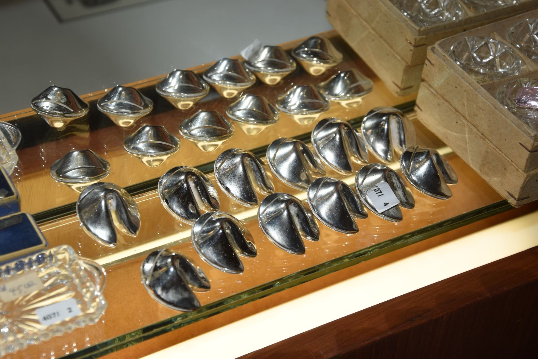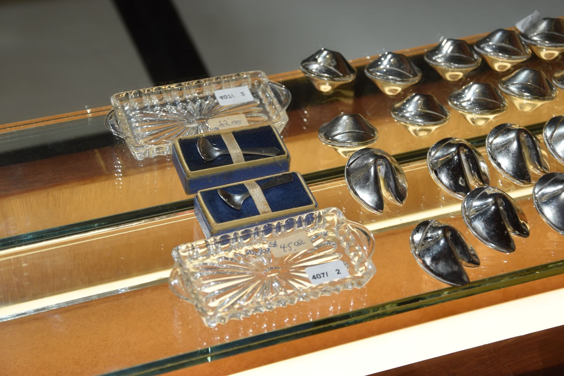 FORTUNE COOKIE CARD HOLDERS, SALT CELLARS & SPOON (STERLING)