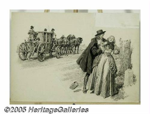 <B>FORTUNINO MATANIA (Italian 1881-1968)</B></I> <BR>Original Illustration <BR>The Arrest of Madame de Brinvillier<BR>Mixed-media on paper, mounted to board <BR>13.5in. x 19in.<BR>Signed lower right: F. Matania <BR>