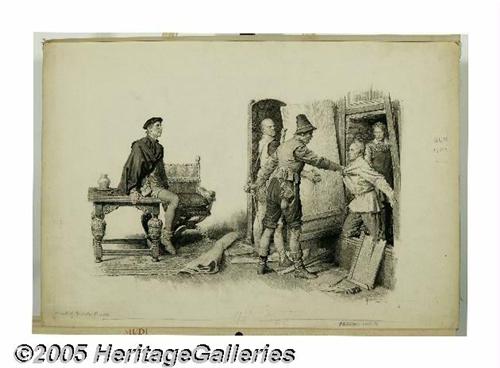<B>FORTUNINO MATANIA (Italian 1881-1968)</B></I> <BR>Original Illustration <BR>The Arrest of Nicholas Owen<BR>Mixed-media on board <BR>12in. x 18in.<BR>Signed lower right: F. Matania <BR>