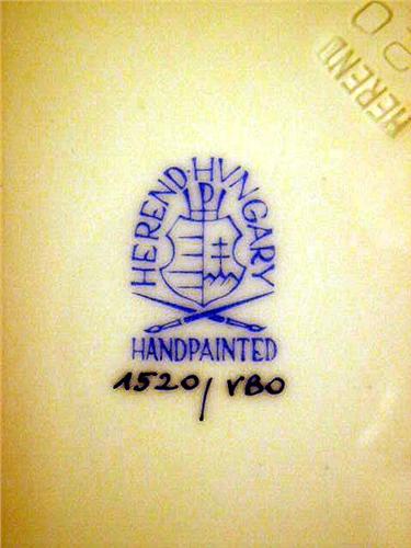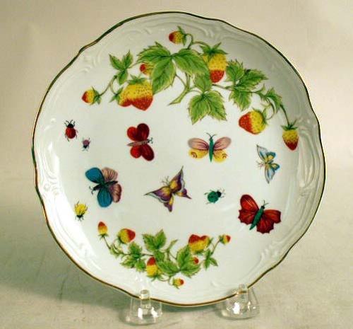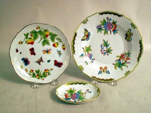 Stamped "Herend 1520". 8 1/4"dia. Together with a small Herend Hungary hand painted dish and sixteen Korean insect and strawberry decorated dessert plates. 57 pieces.