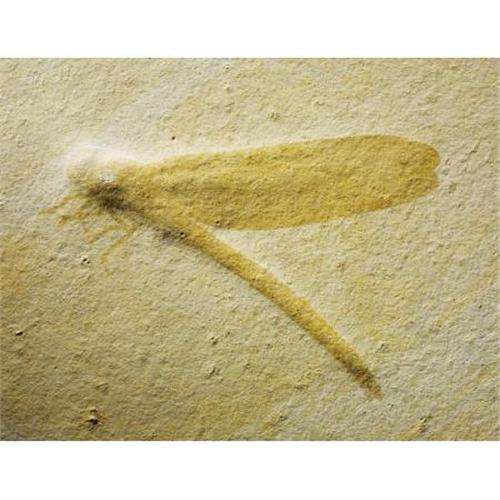 <B>FOSSIL DRAGONFLY</B></I><BR> <I>Stenophlebia latreilli <BR>Jurassic<BR>Solnhofen, Germany</B></I><BR>The insect fossils of Solnhofen are amongst the most beautiful and delicate of any such specimens found anywhere in the world. Transferred to the pale limestone by a process similar to lithography, their shadowy remains are preserved forever as ghost-like traces of the long-vanished life they represent. The beautifully simple lines of the present example, contrasting with the soft detail of the short articulated legs, produce an almost archetypal image of this classic insect fossil. It measures 5½ inches in length on a 12 x 7½ inch natural matrix plate together with a small ammonite. <BR><BR><b>Shipping:</b> Requires 3rd Party Shipping (<a target="_blank" href="http://www.heritageauctions.com/common/shipping.php">view shipping information</a>)