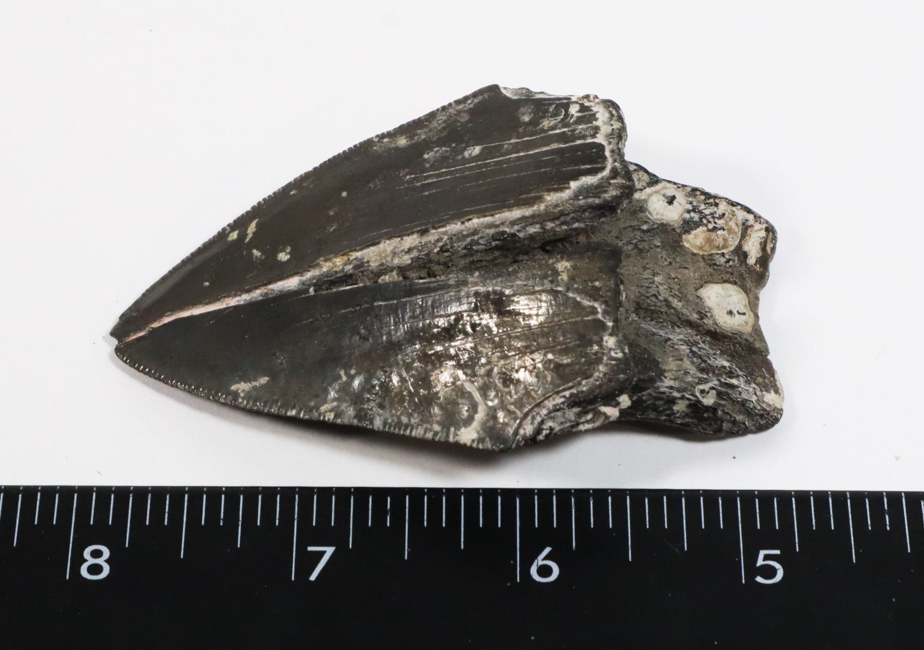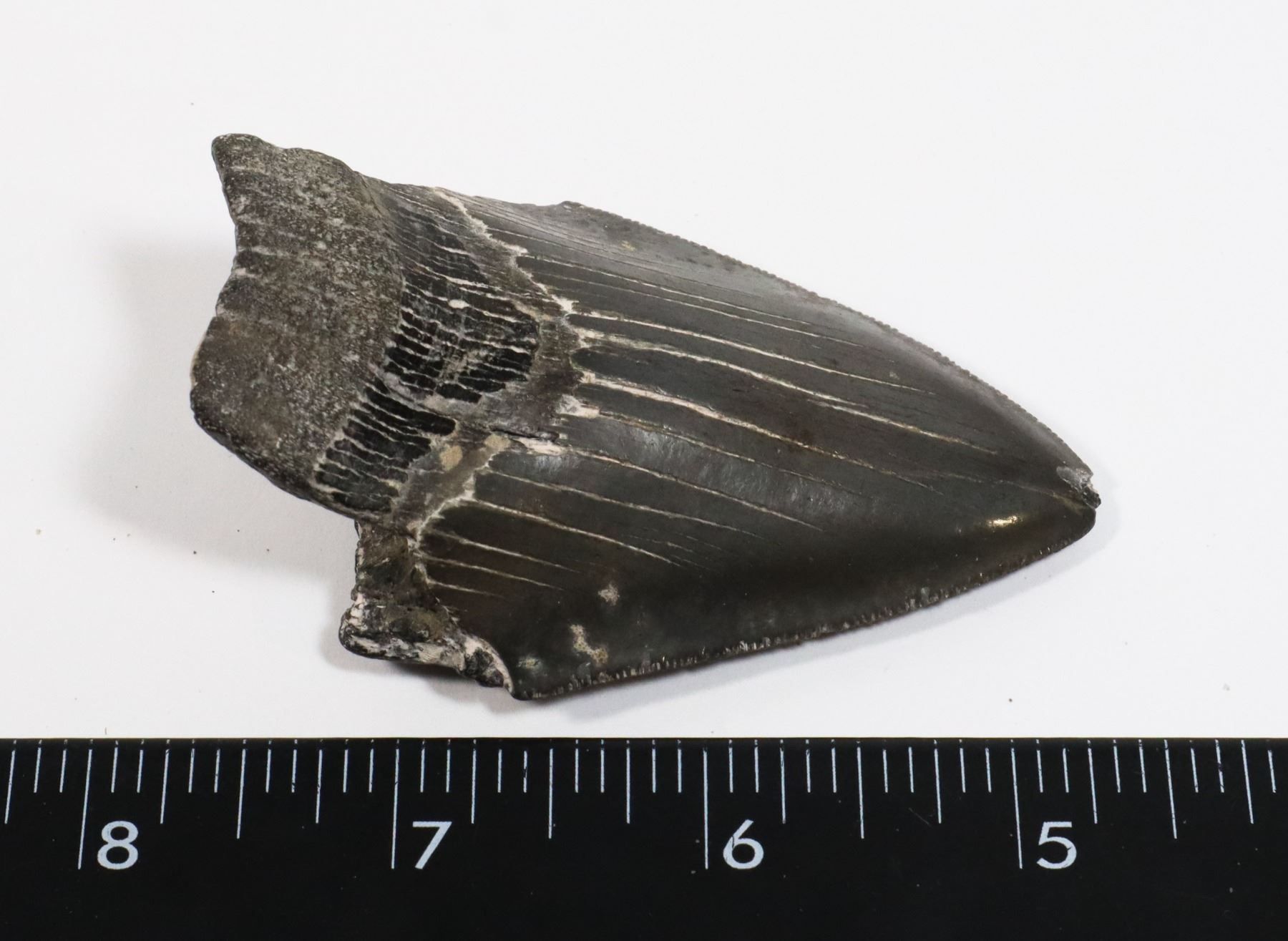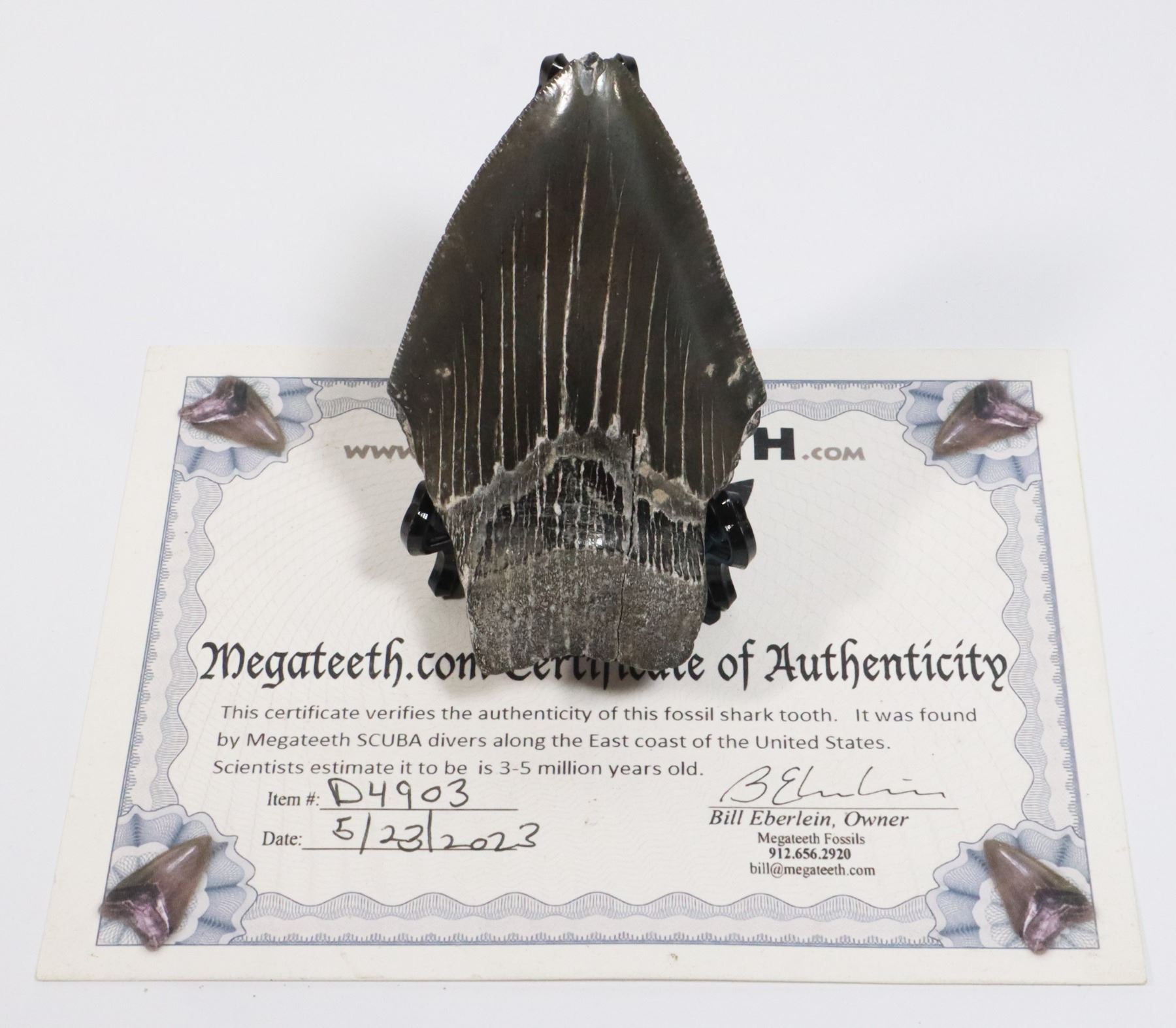 FOSSILIZED MEGALODON TOOTH WITH STAND AND COA