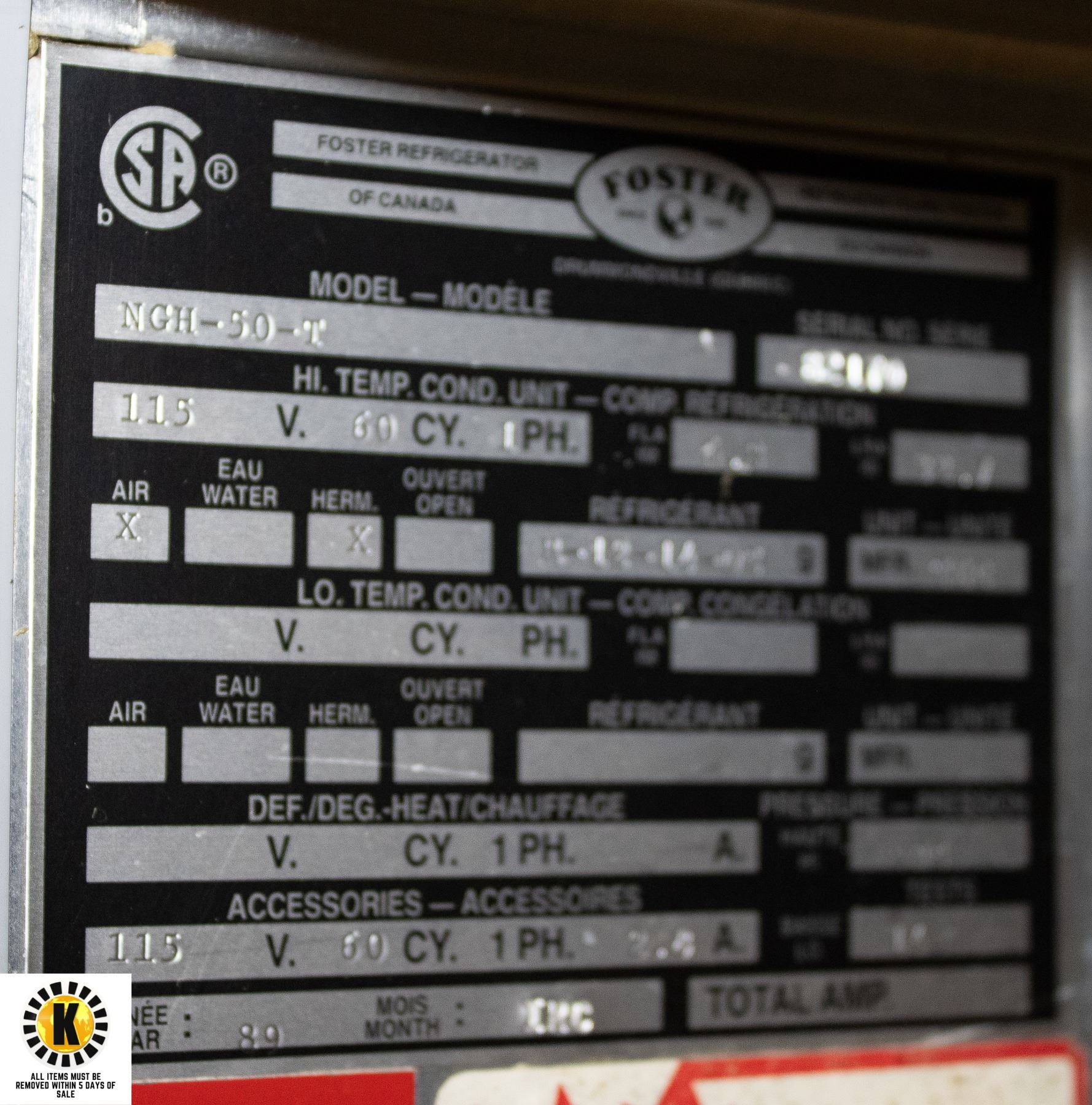 MODEL # NGH-50-T, VOLTS-115, 60 CYCLE, PHSAE-1. LEGS FOR REFRIGERATOR ARE INSIDE THE RIGHT HAND DOOR, APPROX 55"X32"X79" SITTING FLAT ON THE GROUND