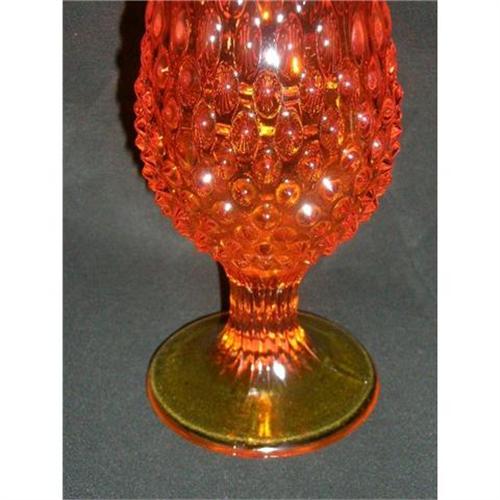WE PRESENT TO YOU A VERY TALL FOSTORIA SWUNG VASE SHOWING AMBER IN COLOR WITH HOBNAIL PATTERN ON TOP OF A FLUTED PEDESTAL BASE. HARD TO FIND AMBER COLOR ABSOLUTELY STUNNING! MUST HAVE BEEN FOR DISPLAY ONLY LOOKS NEW.