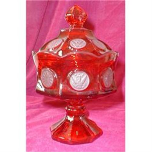 Beautiful Fostoria ruby Coin pattern covered candy dish.