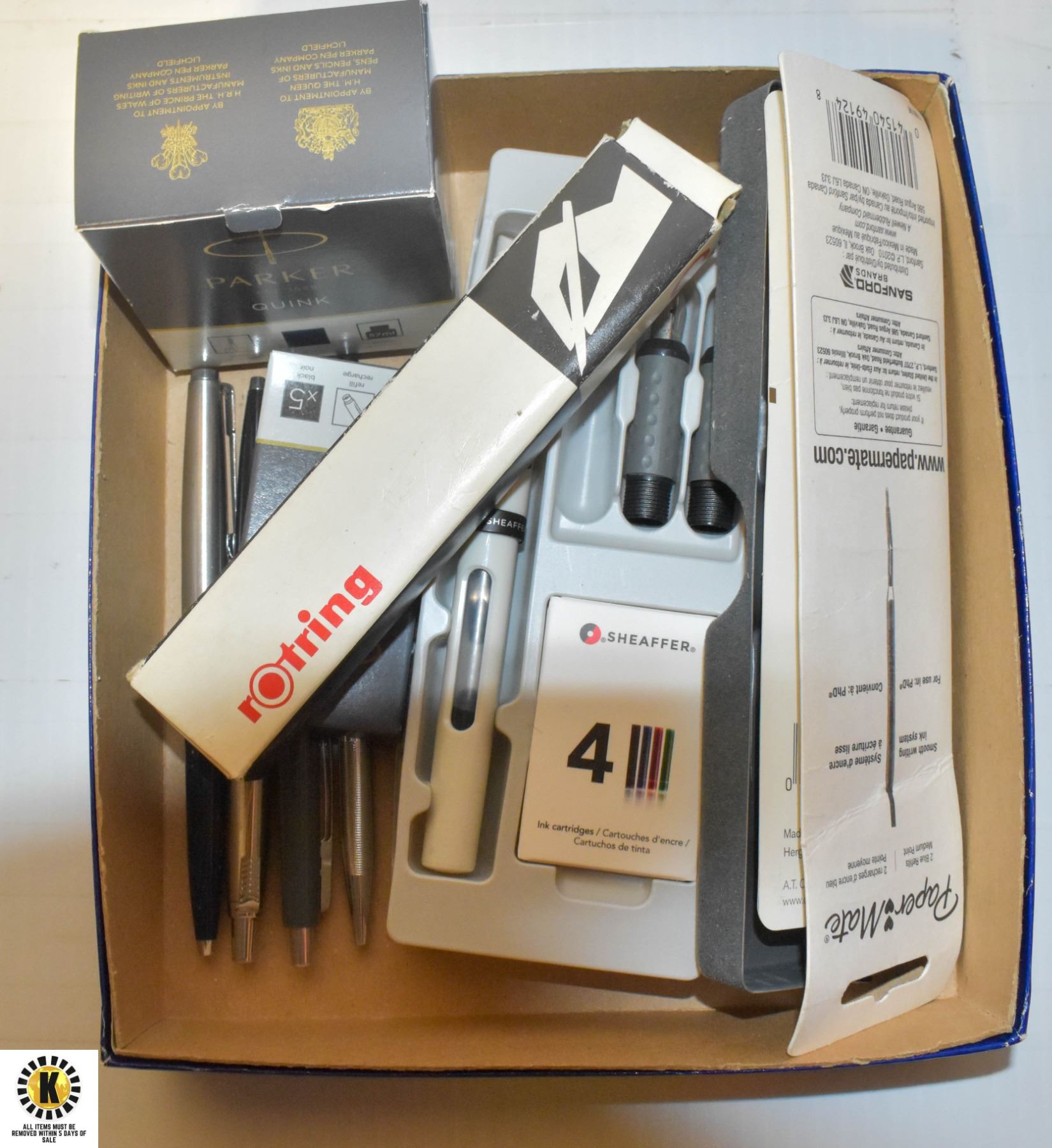 FOUNTAIN PENS & INK- BOX LOT ASSORTED
