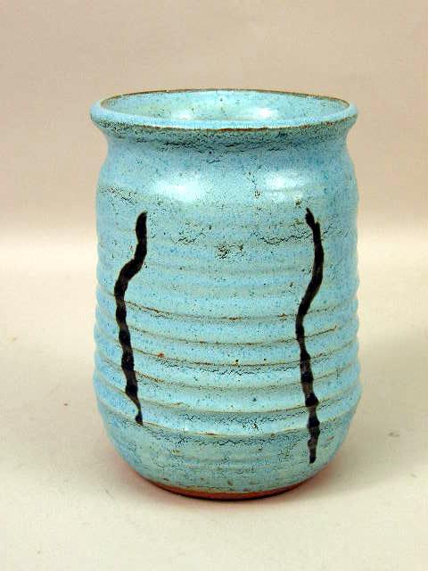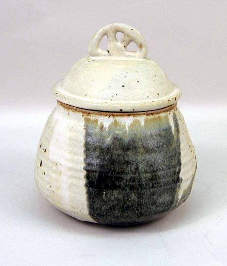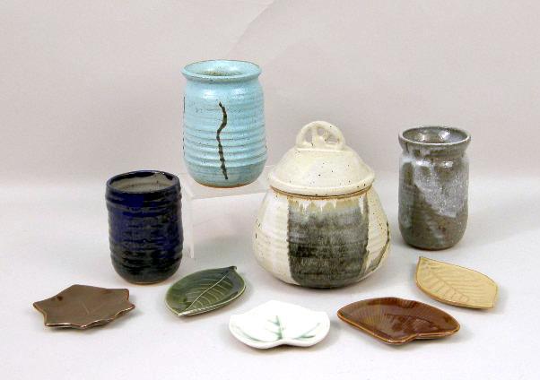 Including a covered pot, all impressed "MK" on the underside. Together with a boxed set of five pottery coasters. The tallest 7 1/4"h