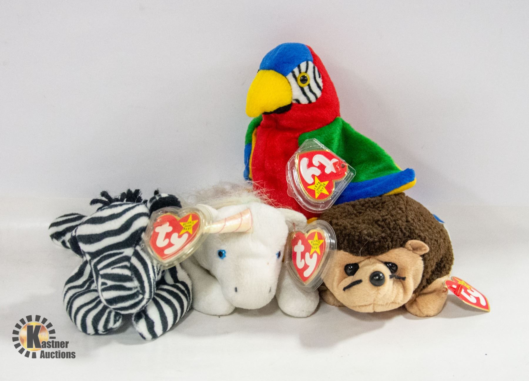 FOUR BEANIE BABIES WITH TAGS, 3 IN TAG