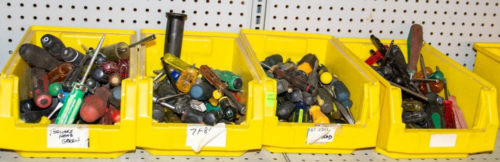 FOUR BINS OF SCREWDRIVERS