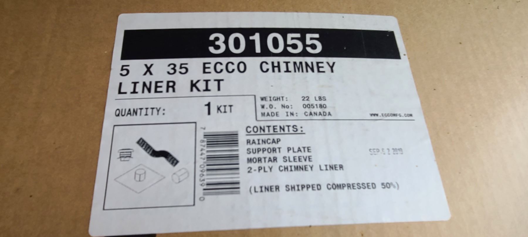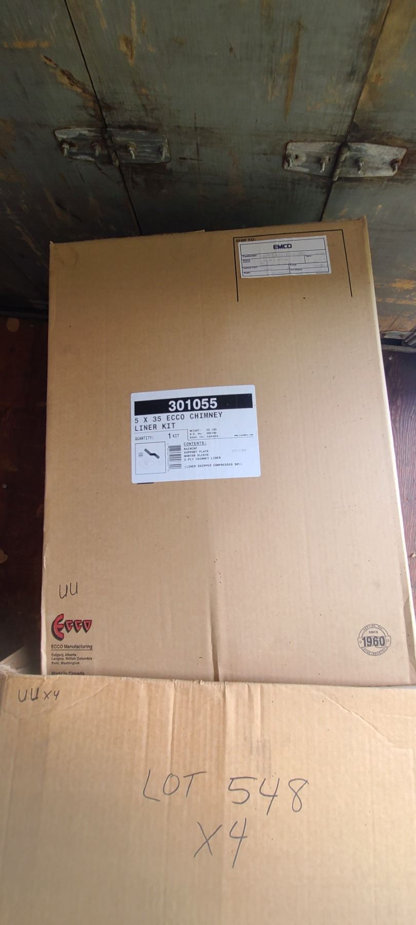FOUR BOXES OF 5 X 35" CHIMNEY LINER, 6" GAS LINER